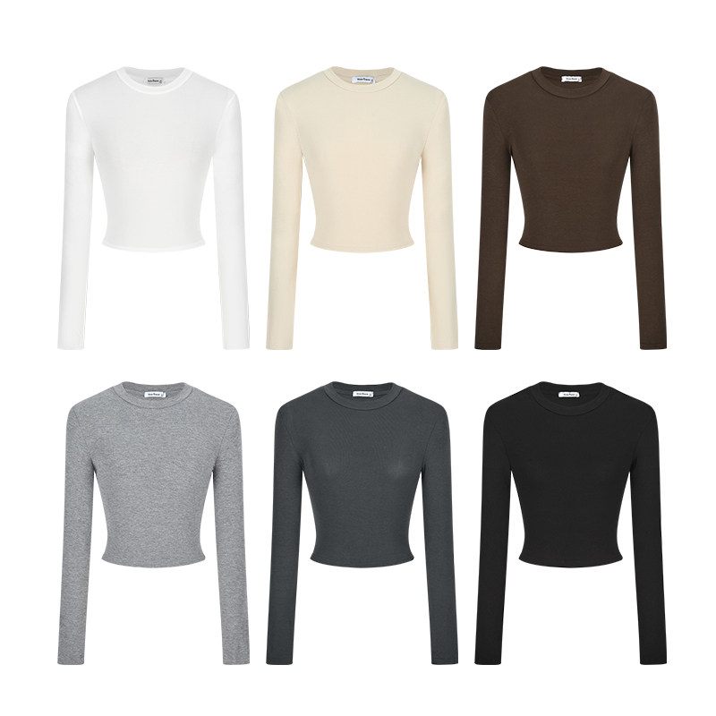 上衣 t恤短款 MosesQueen魔西女王黑色打底衫 女春秋冬内搭正肩长袖