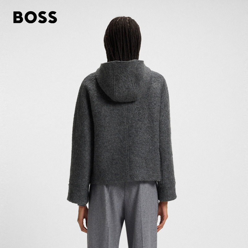马登复古藏青色收腰休闲加厚防风连帽毛呢呢子外套开衫 上衣女秋冬