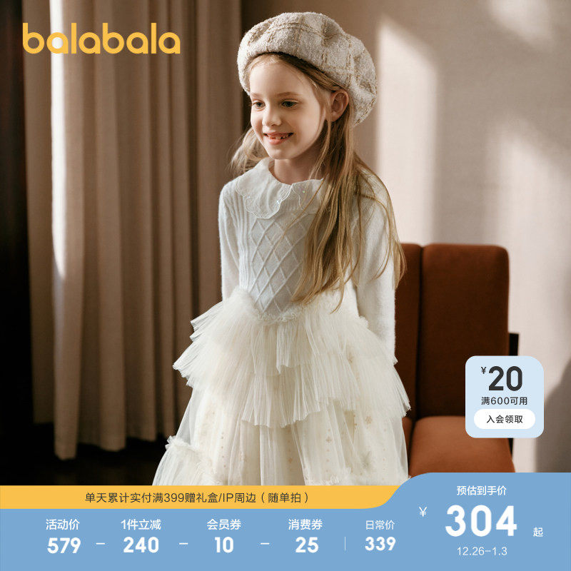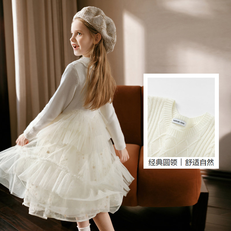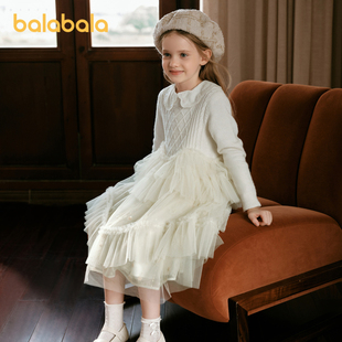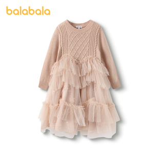 羊毛针织拼接网纱女童连衣裙子梦幻甜美 巴拉巴拉冬装 premium