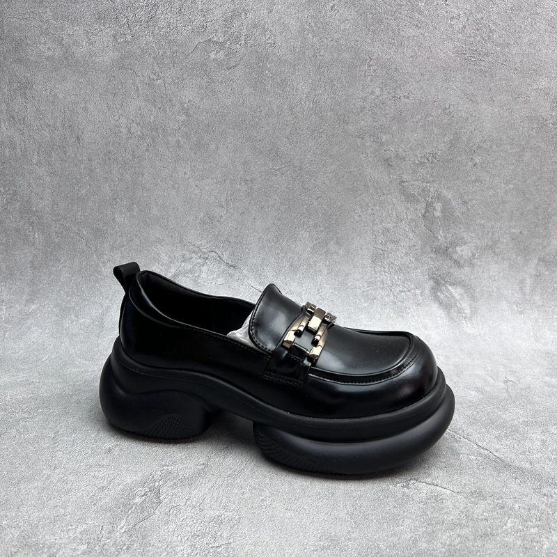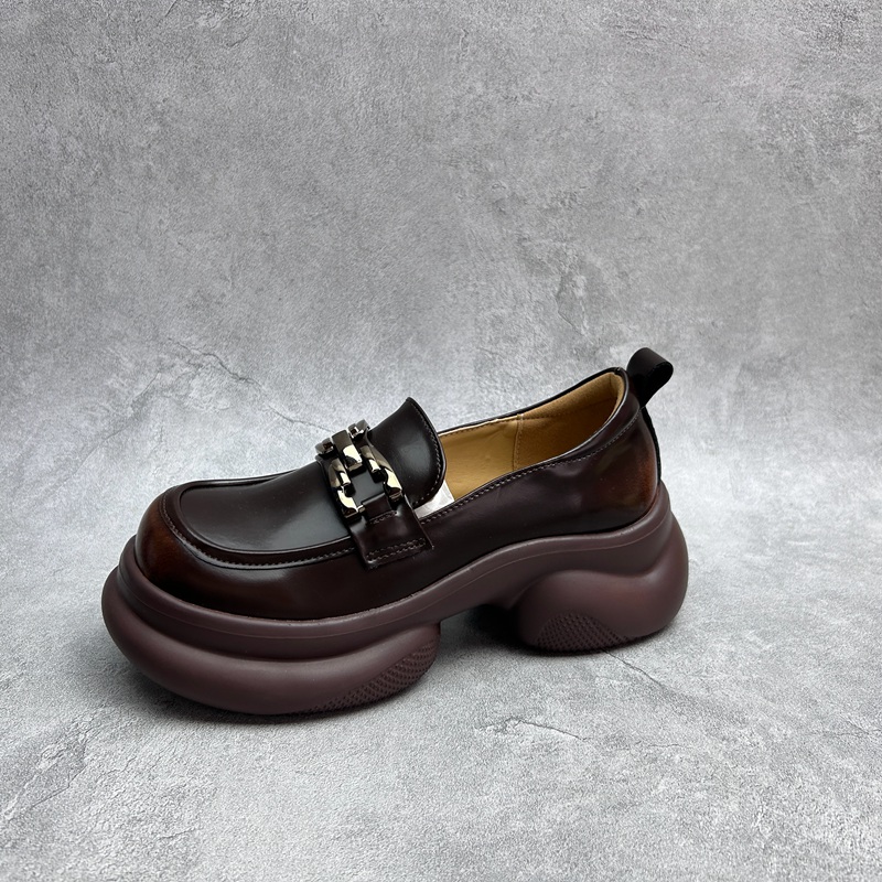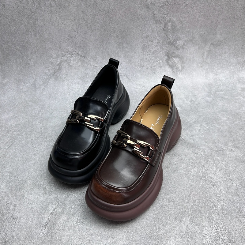 女鞋 真皮新款 厚底休闲深口乐福鞋 时尚 2025断码 牛皮百搭女单鞋 秋季