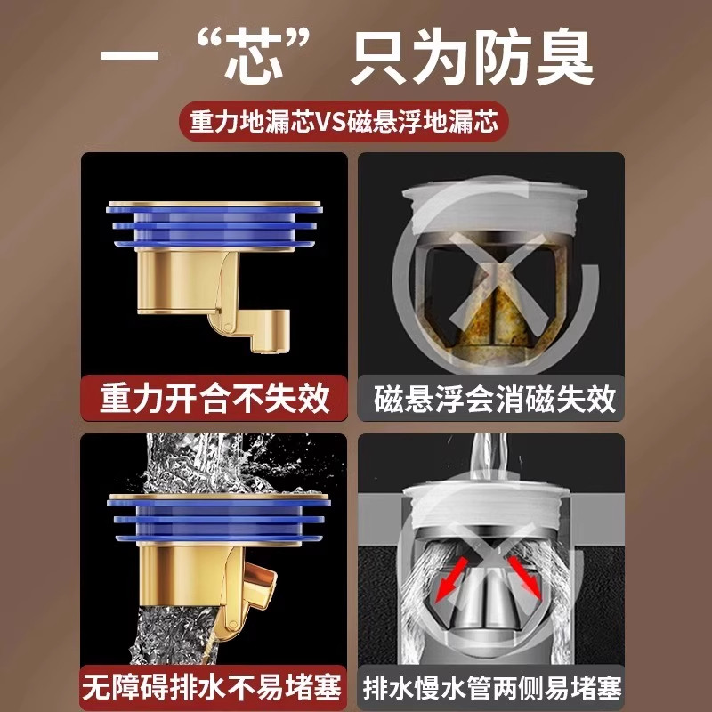 地漏防臭器全铜内芯通用卫生间厕所防蚊虫下水管道口防返臭味神器