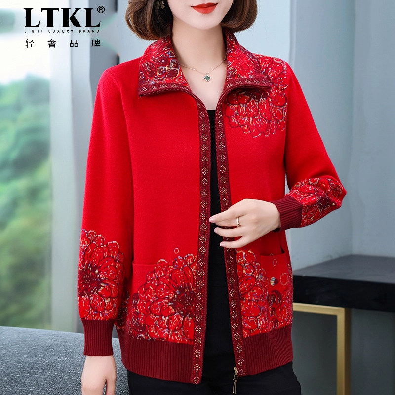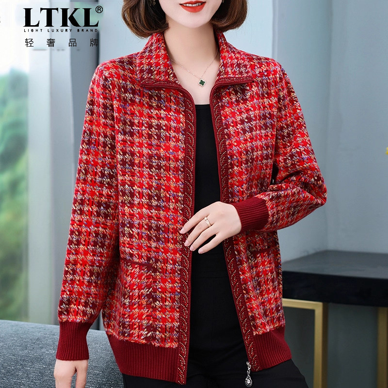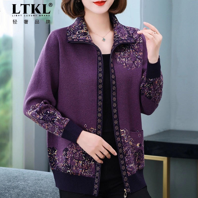 妈妈秋装 秋季 外套上衣大码 洋气中老年人女装 衣服 针织开衫 2025新款