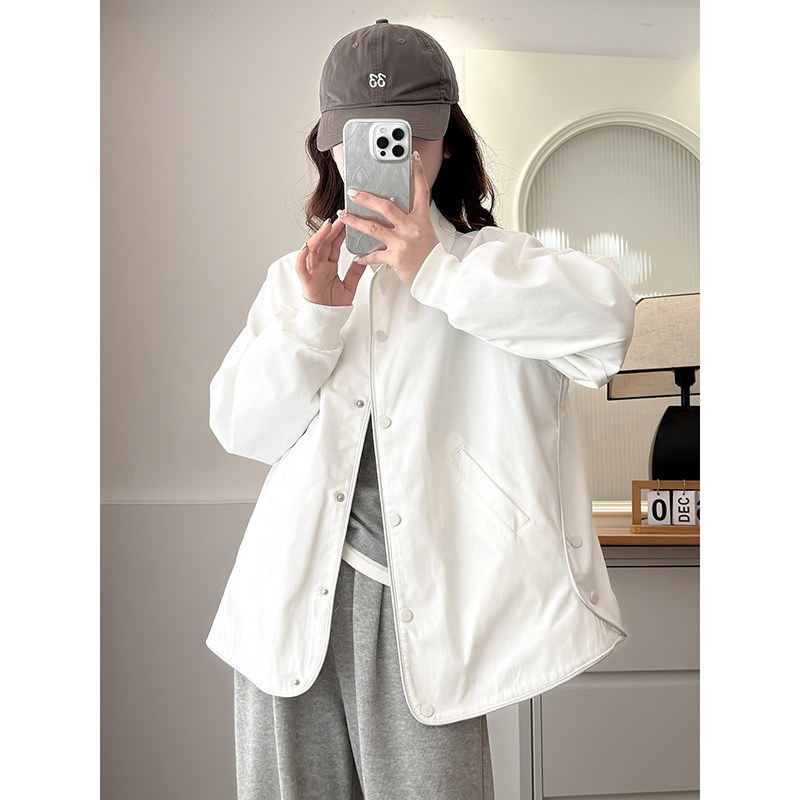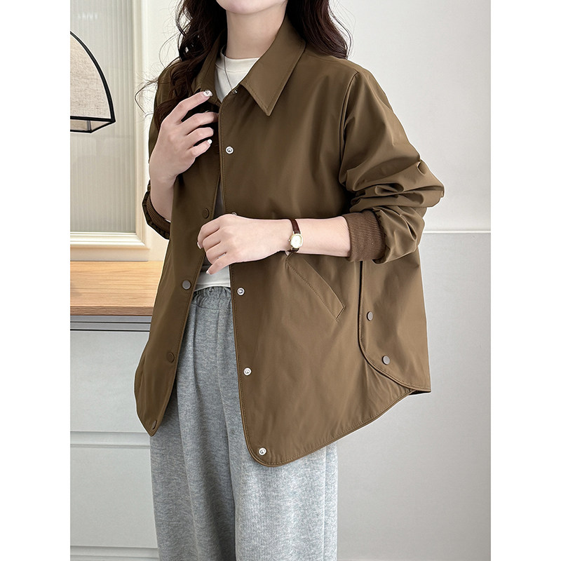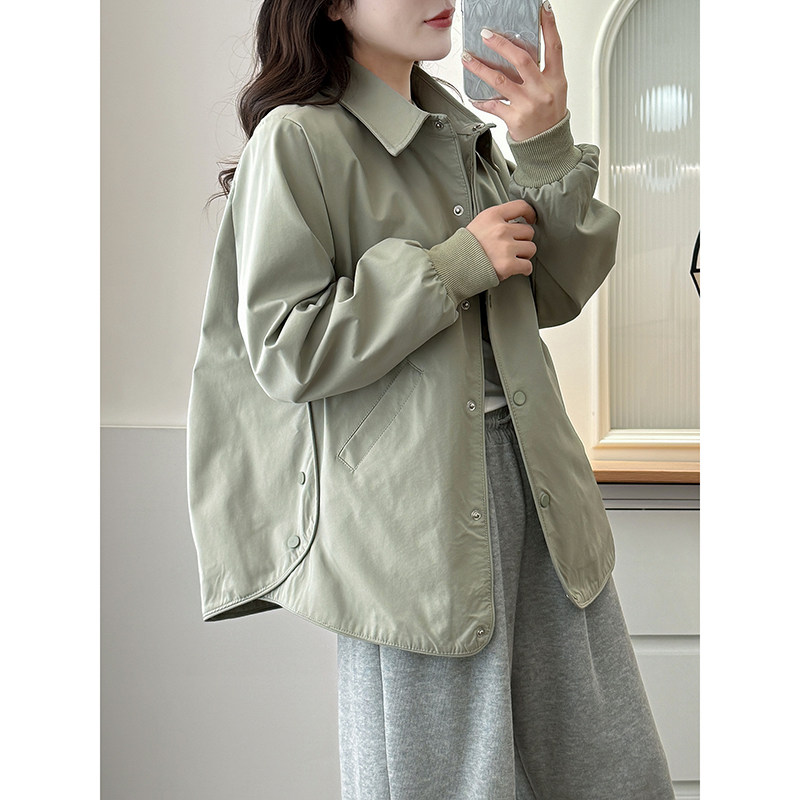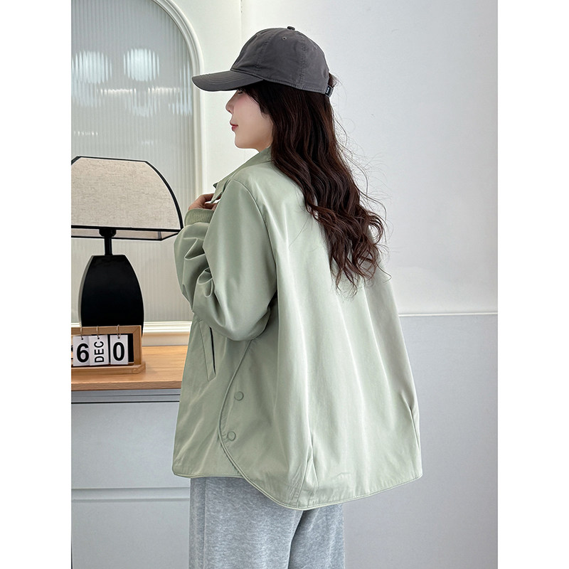 新款 翠袖 秋季 女装 纯色休闲夹克Polo领外套女宽松胖mm显瘦上衣 大码