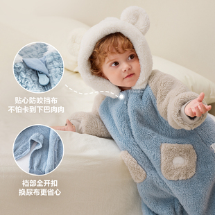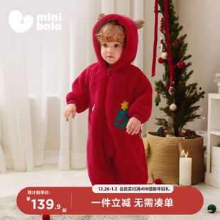 迷你巴拉巴拉婴儿衣服宝宝睡衣家居保暖珊瑚绒红色新年连体衣爬服