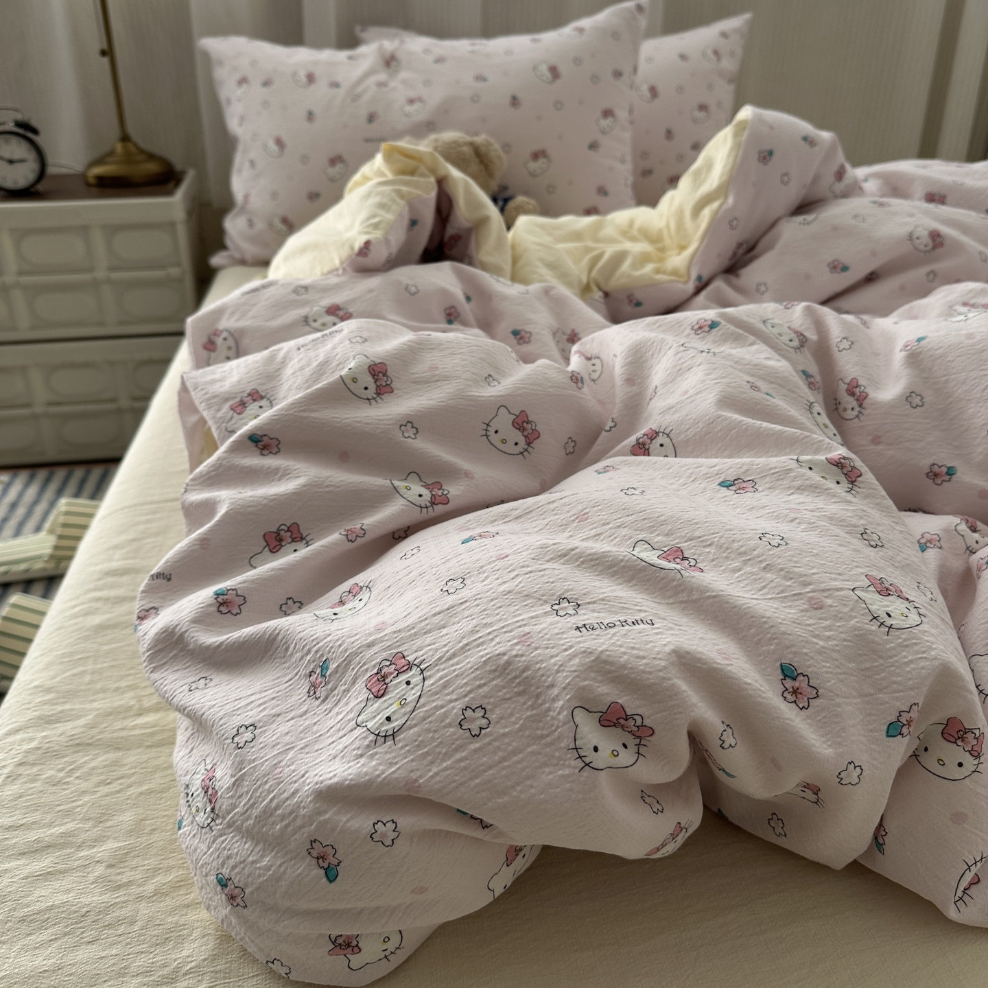 可爱少女ins卡通三丽鸥KT猫咪软糯水洗棉四件套学生床单三件套1.8