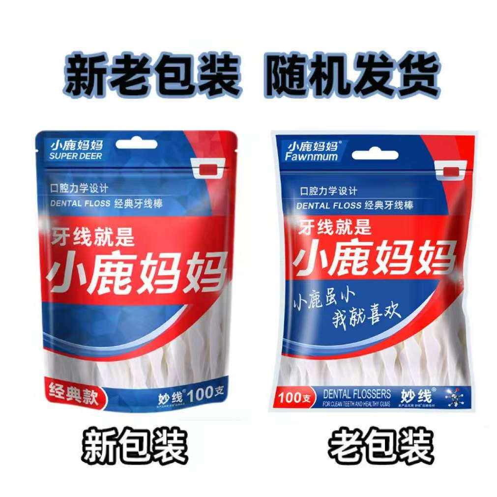 小鹿妈妈口腔力学牙线100支超细家庭装 便携一次性牙线棒牙签