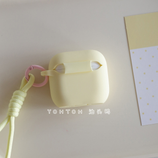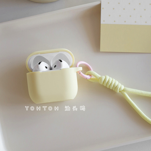 pro2代纯色苹果蓝牙耳机壳2025四代pods3硅胶连体Pro盒 保护套airpods 油头鸥新款 奶黄色适用于airpods4降噪版