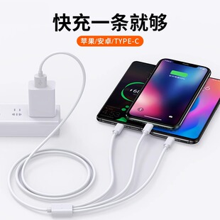 加长3米三合一10A超级快充数据线适用苹果安卓华为荣耀小米OPPOvivo手机iPad平板充电宝USB车载多功能充电线