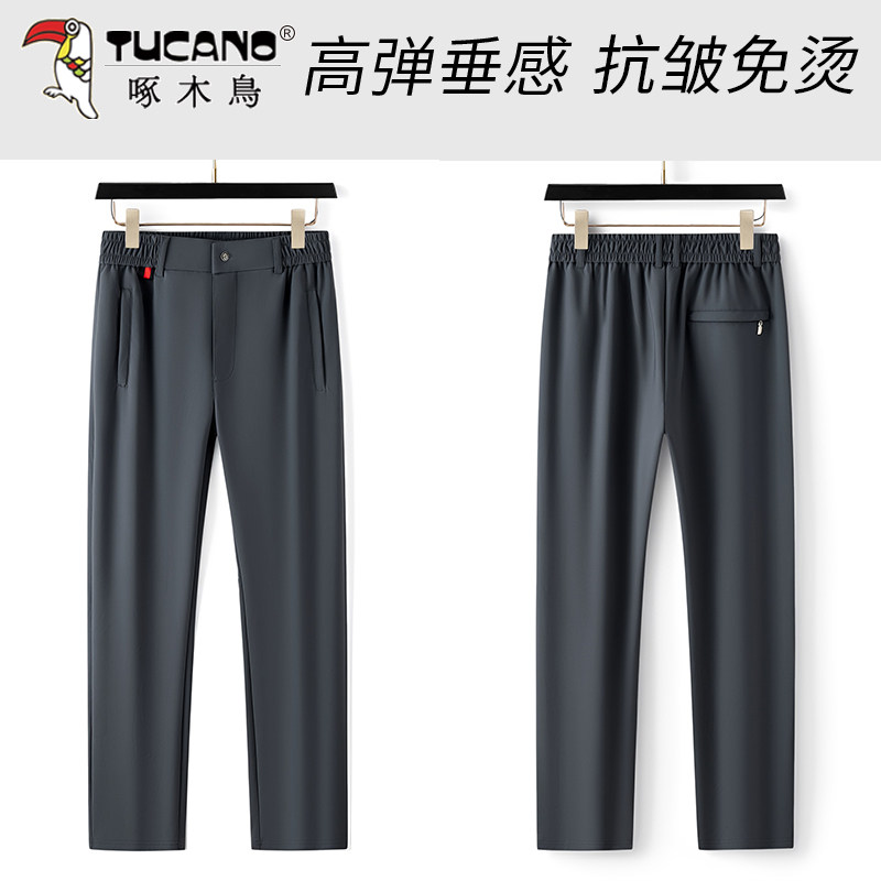 中年人秋冬高弹宽松运动裤 啄木鸟正品 休闲裤 男士 子 牛奶丝垂感厚款