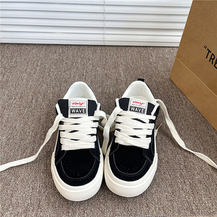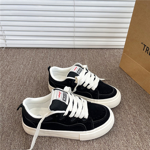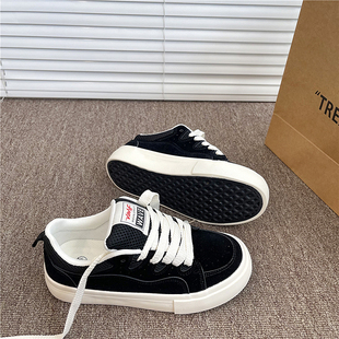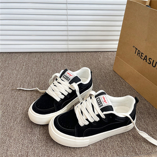 黑色爆款 学生休闲运动鞋 复古小众面包板鞋 新款 女2025冬季 港风女鞋