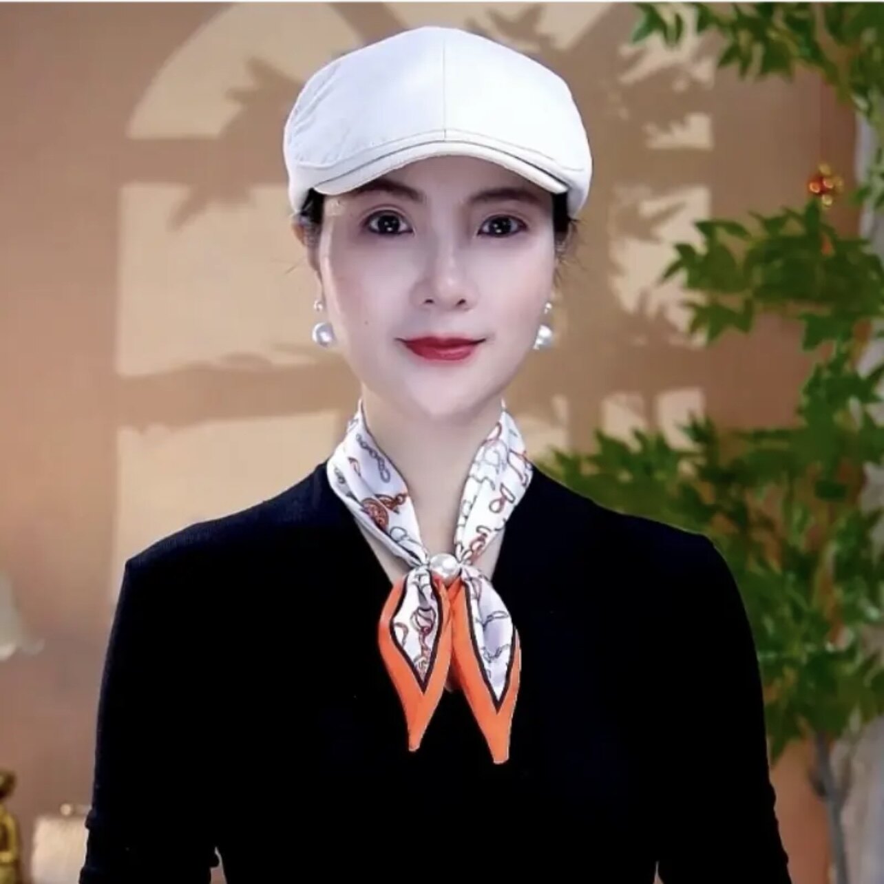 百搭吸扣丝巾懒人围巾气质时尚 时尚 潮 冰丝缎珠珠蝴蝶结小丝巾