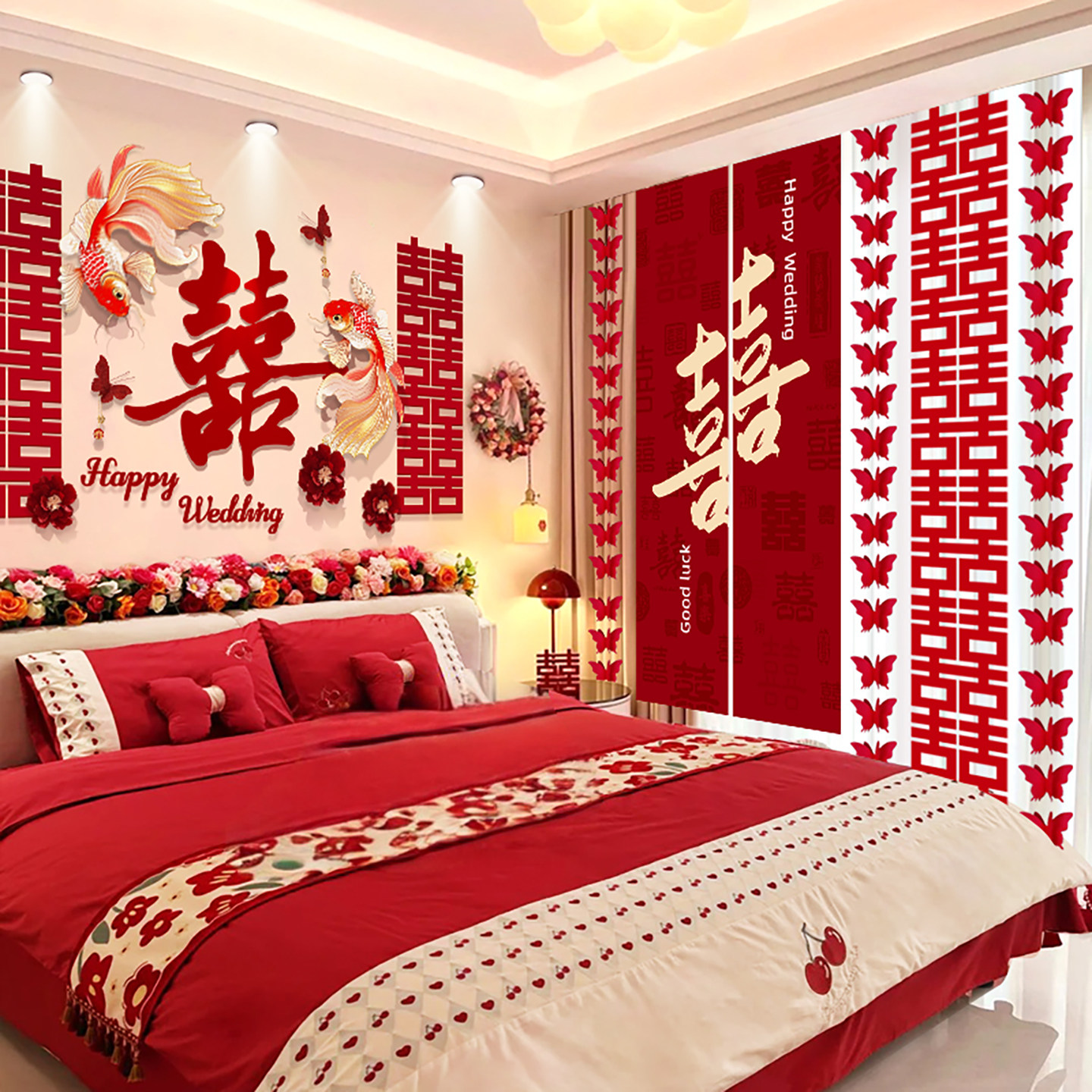 婚房布置套装 蝴蝶拉花长条喜字结婚备婚新房卧室婚礼客厅窗帘挂件