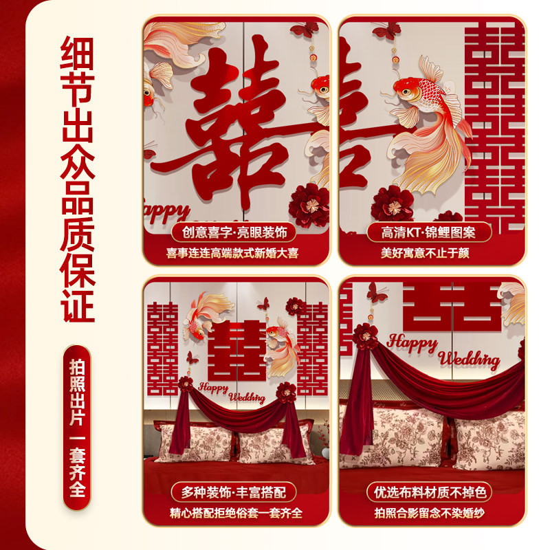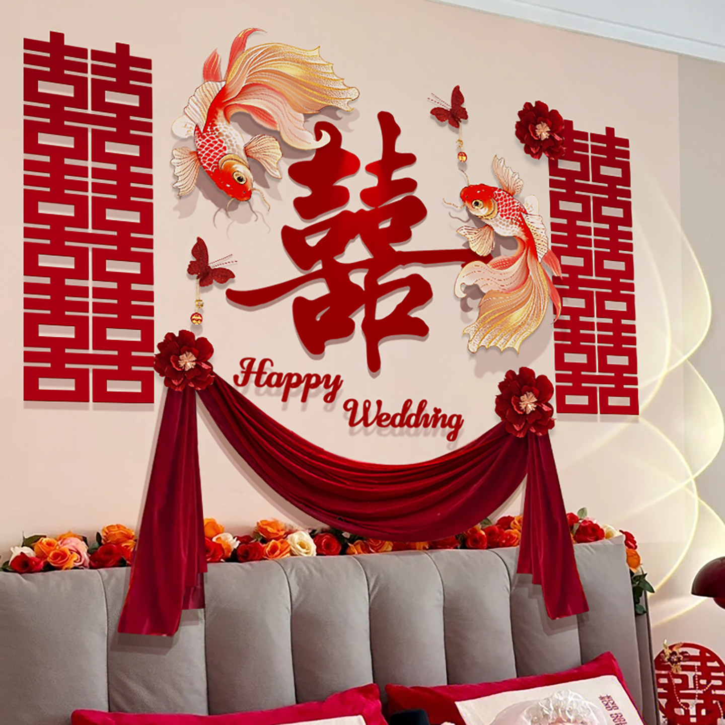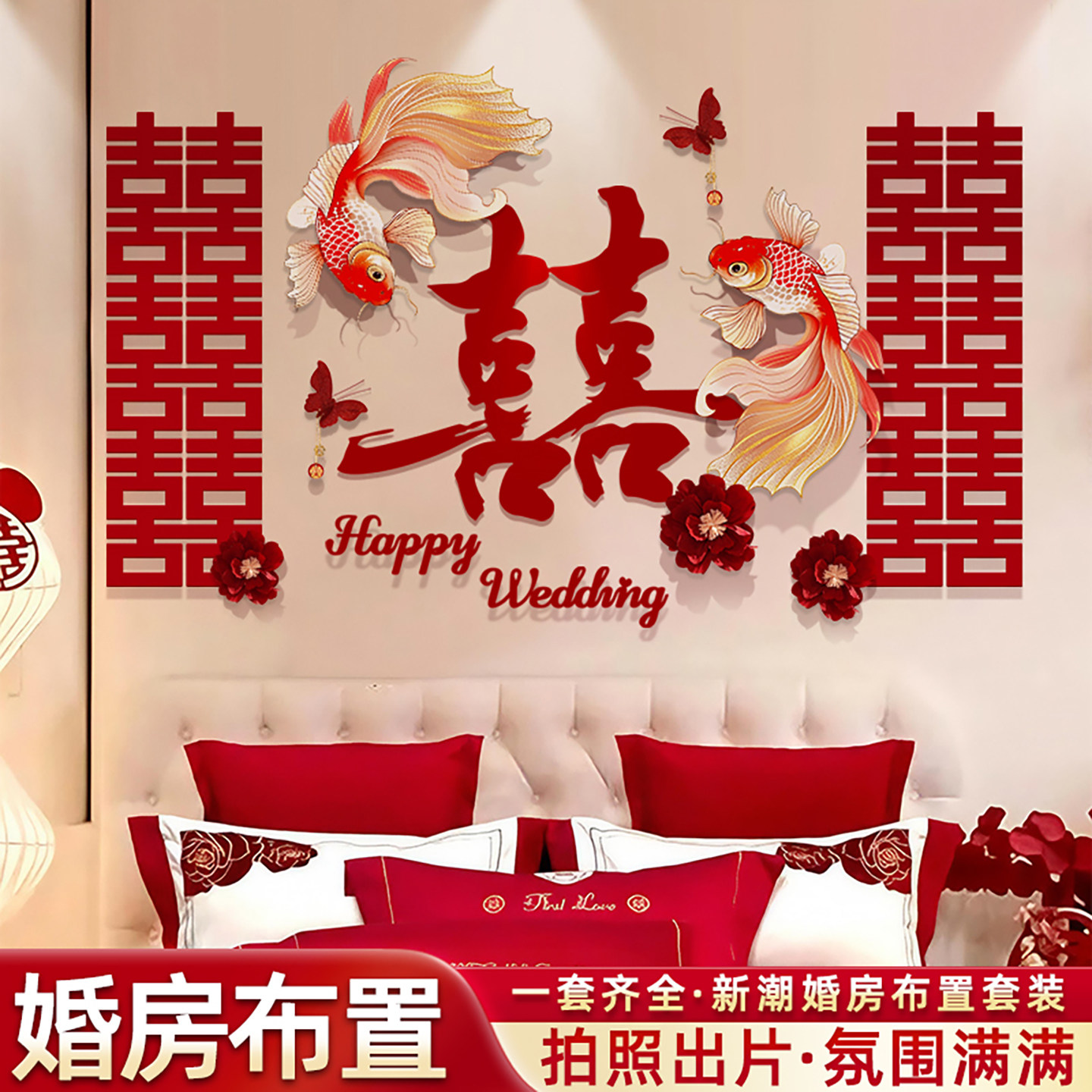 2025婚房布置套装 饰女男方新婚卧室结婚房间拉花全套背景墙 新房装