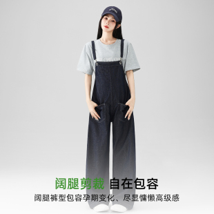 洋气减龄小个子2026新款 宽松直筒连体裤 子牛仔女夏春装 孕妇背带裤