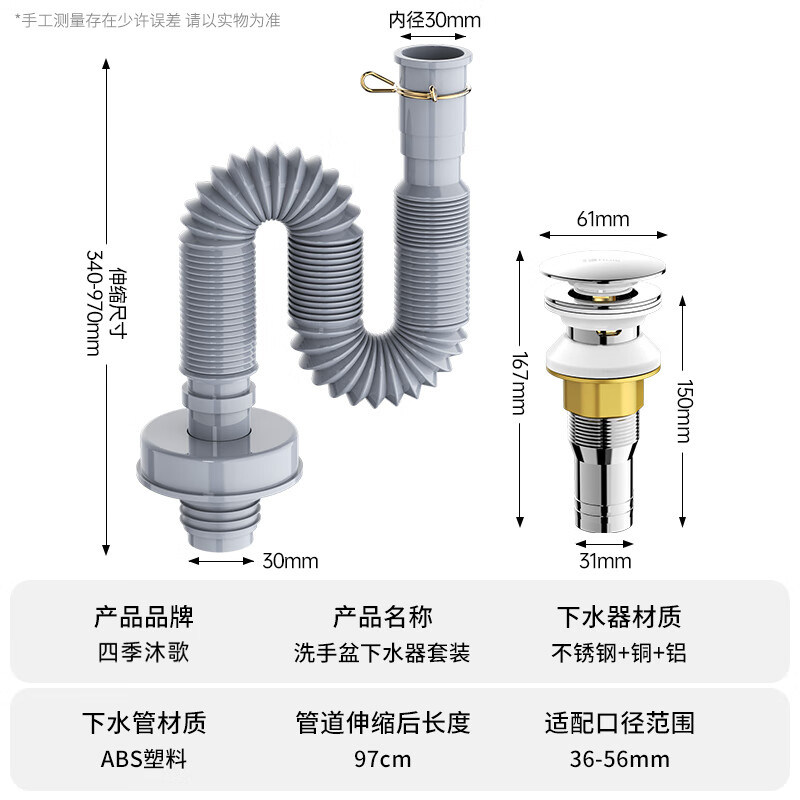 沐歌防臭下水管洗手池面盆排通用水管套装 四季 国补立减15%