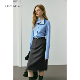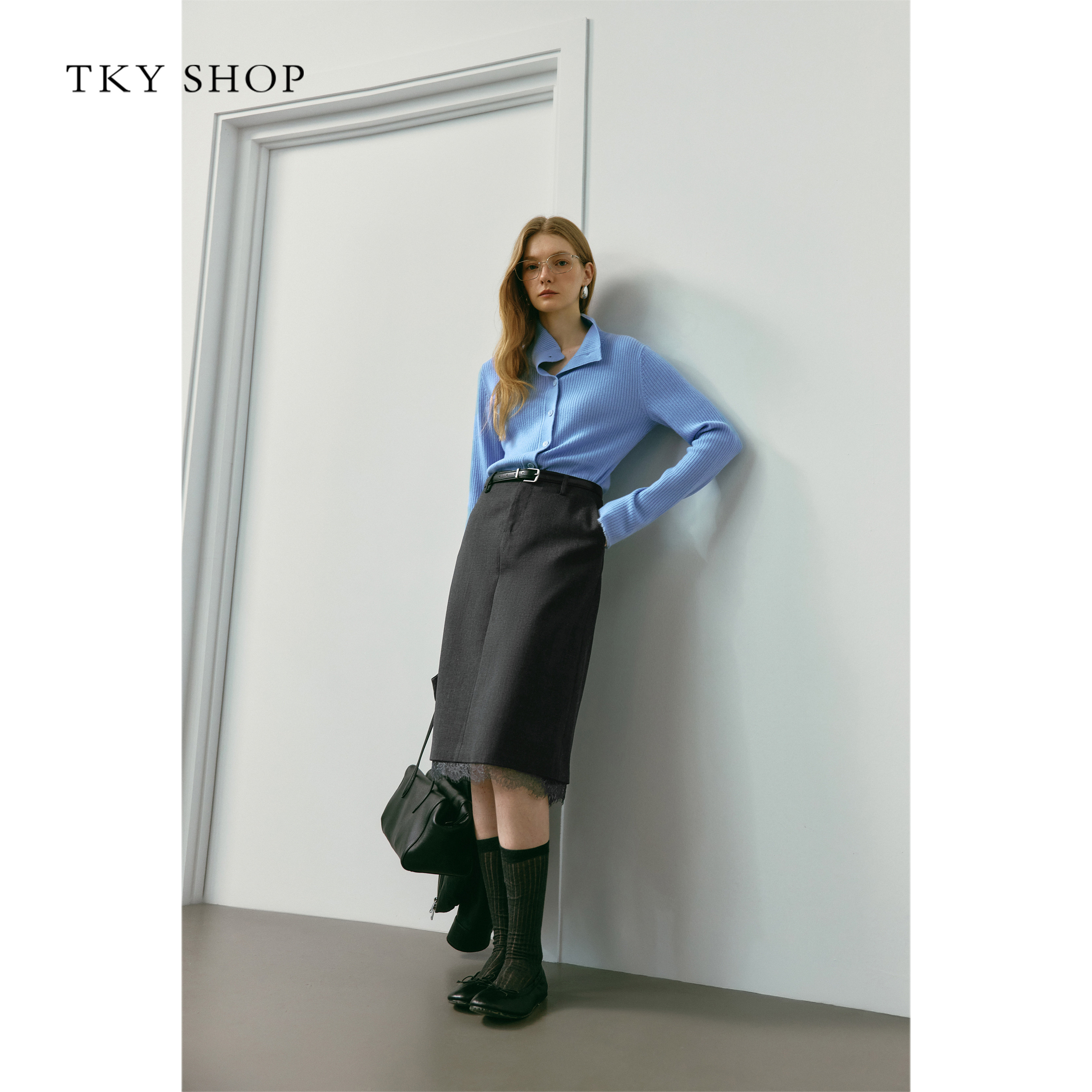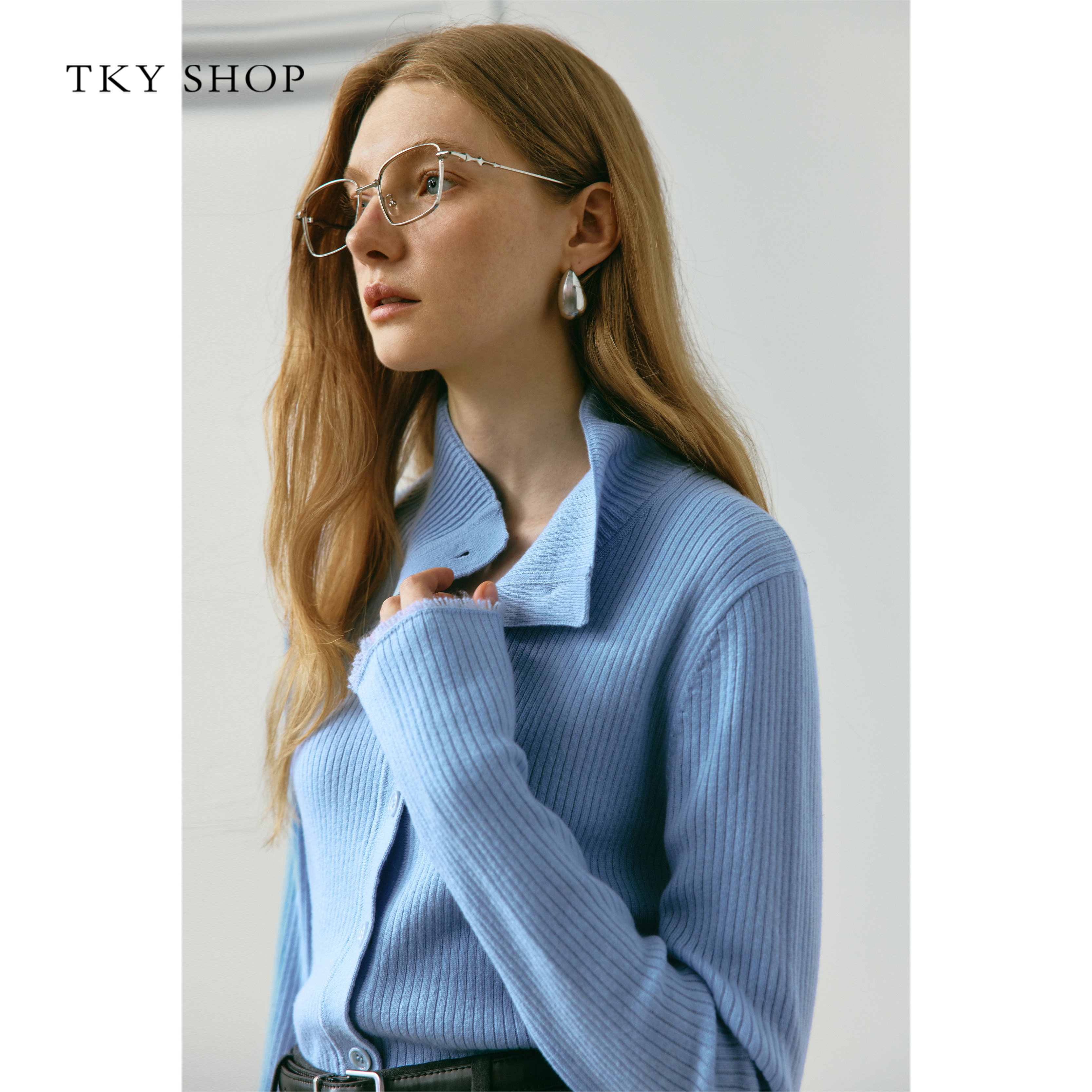 商场同款 针织衫 TKY 女2025秋新款 10I1MA03L035 SHOP翻领毛开衫