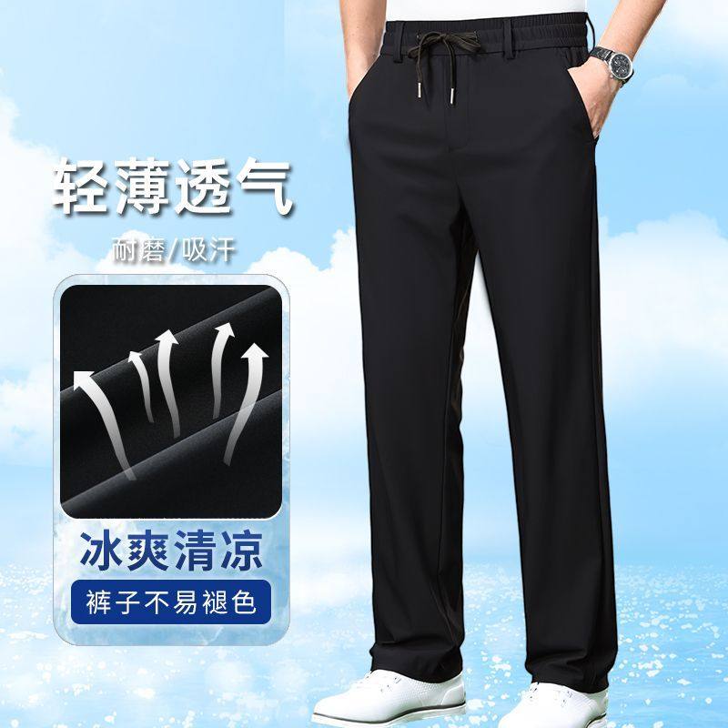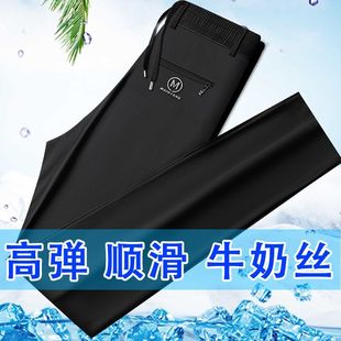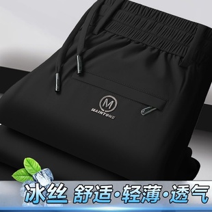 2025夏季 男士 新款 弹力宽松紧腰透气大码 子 冰丝薄款 中青年裤 运动裤