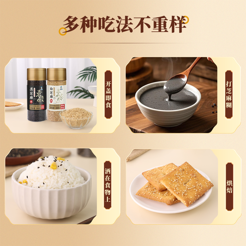 炒熟白芝麻熟黑芝麻颗粒饱满生黑白芝麻细选免洗干净带皮无沙炒制
