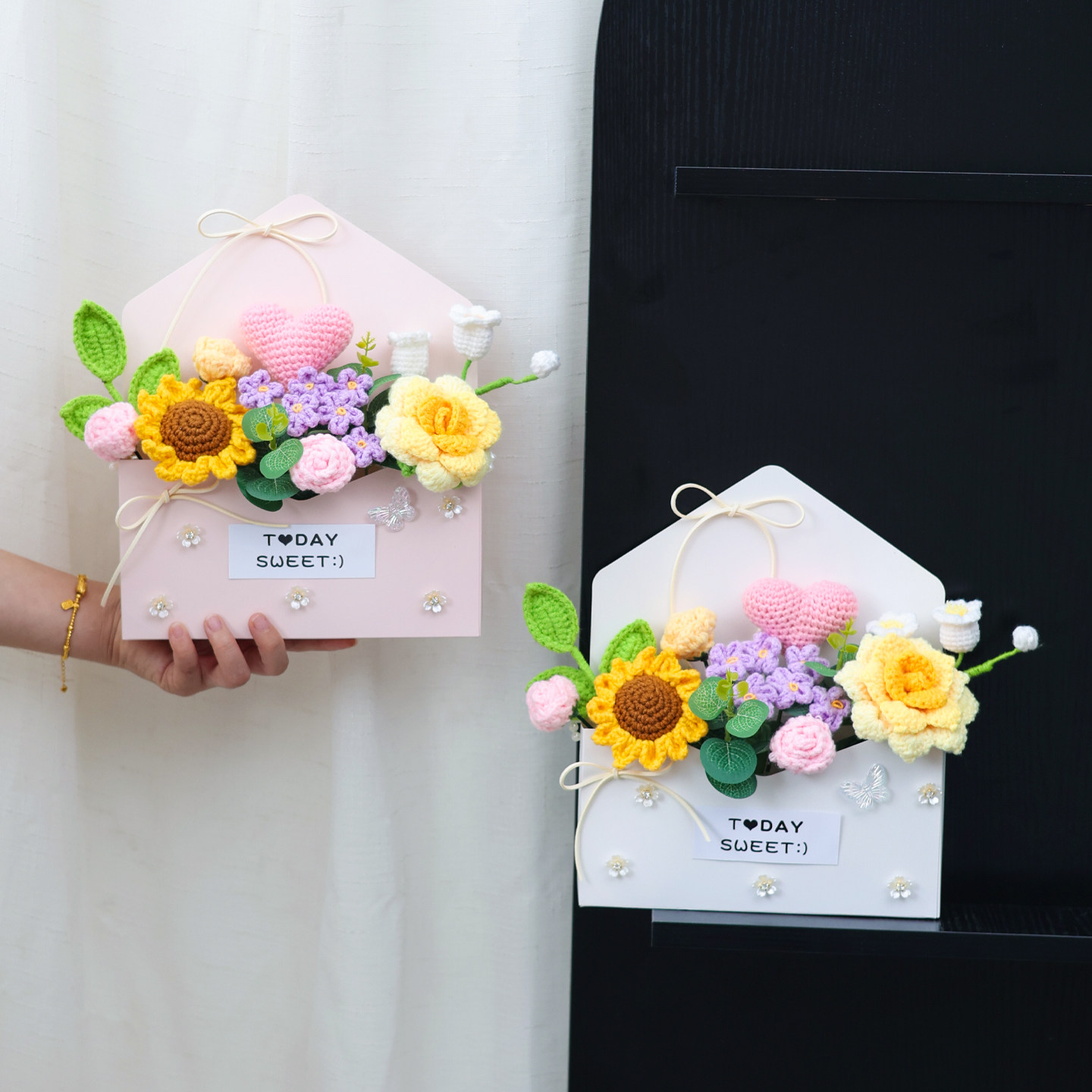 创意针织成品信封花束秋天 第一封情书生日惊喜礼物女友老婆闺蜜