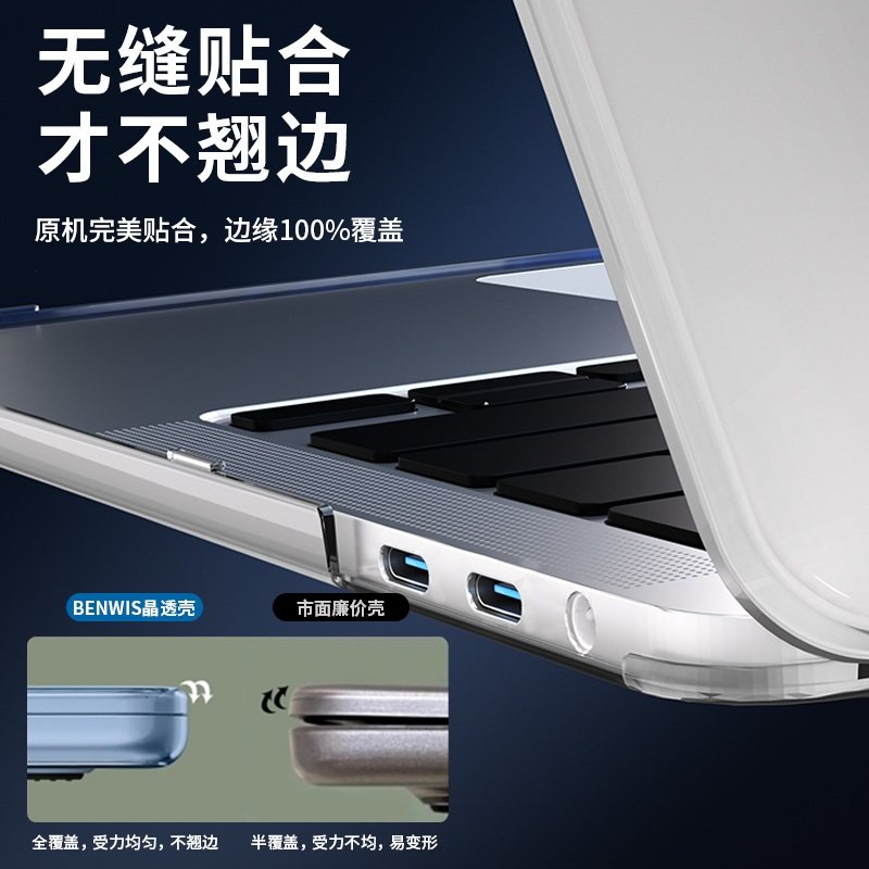 BENWIS适用M4笔记本MacBookAir2025款 超薄透明13.6寸保护壳套15.3苹果电脑壳mac16.2透明防刮14.2外壳13.3寸