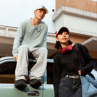 男生圆领加绒打底衫 t恤秋冬2025新款 长袖 GV真维斯藏青色纯棉男士
