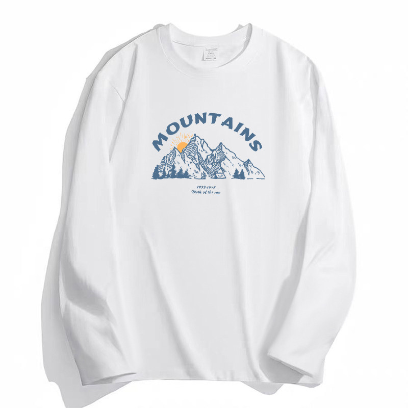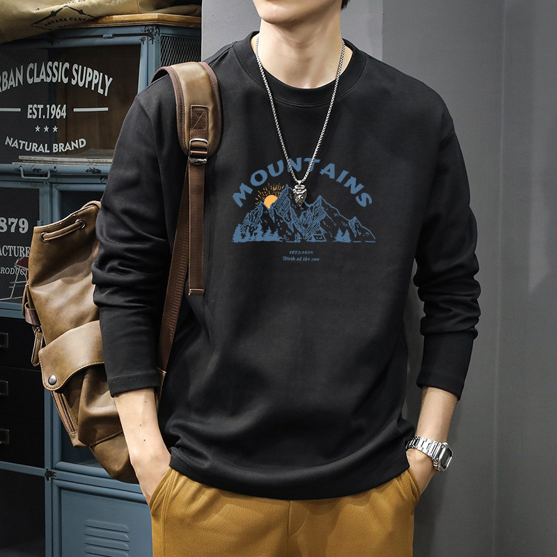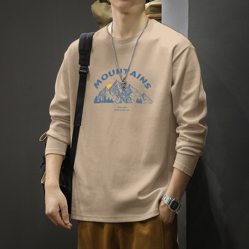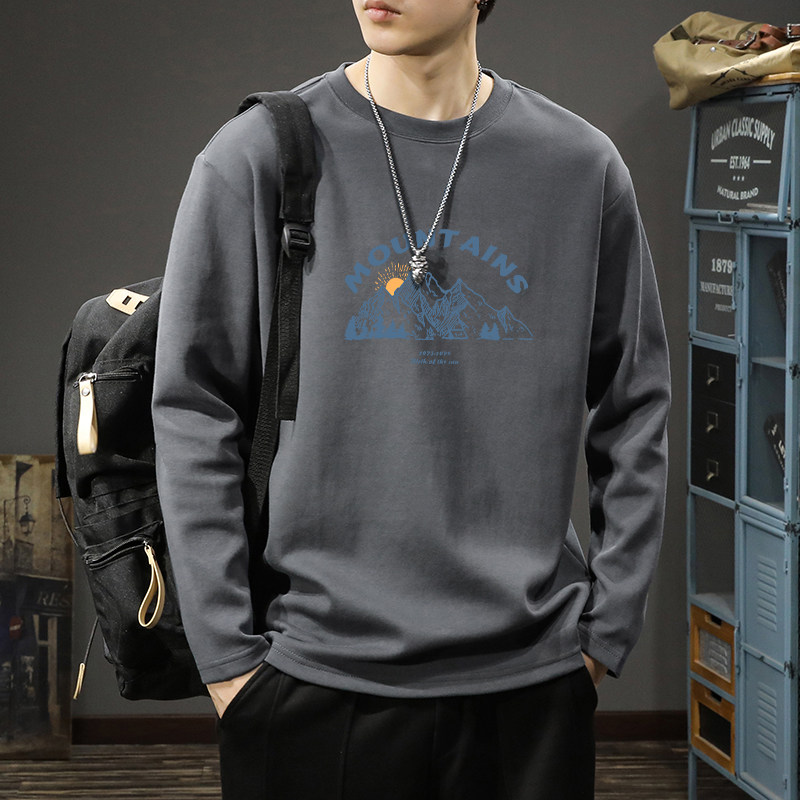 内搭打底衫 简木迹美式 260克纯棉圆领卫衣男士 t恤男春秋季 白色长袖
