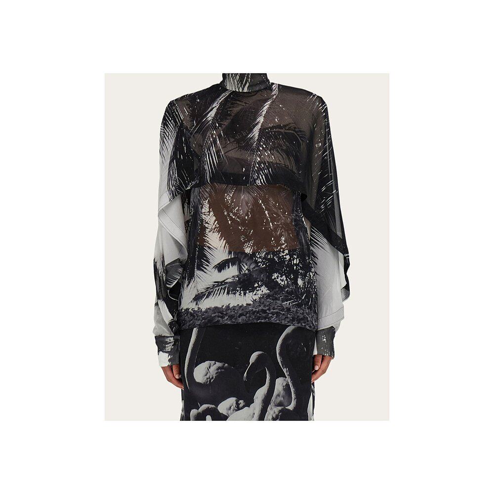 13H792真丝高领 印花乔其纱衬衫 香港直邮Salvatore Ferragamo
