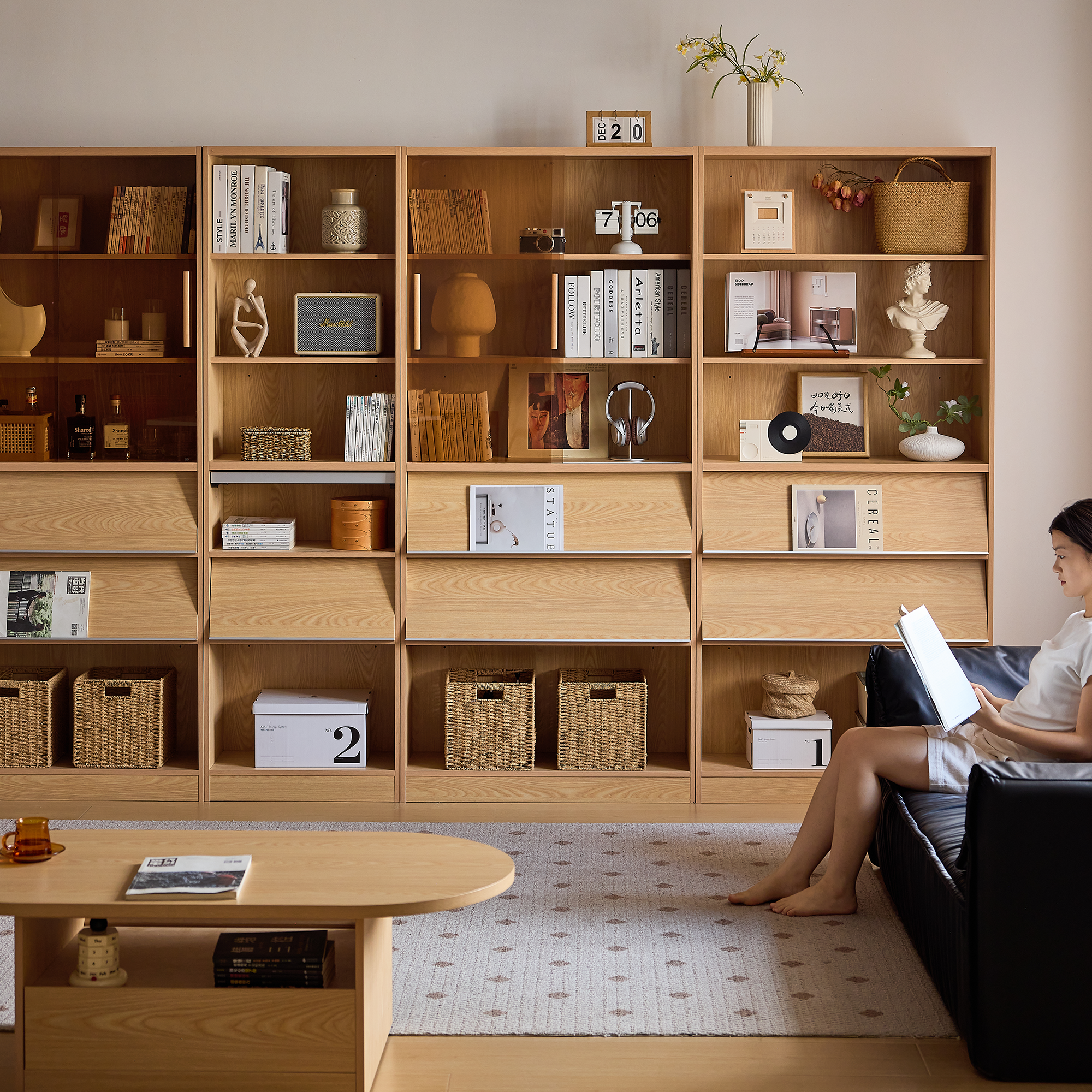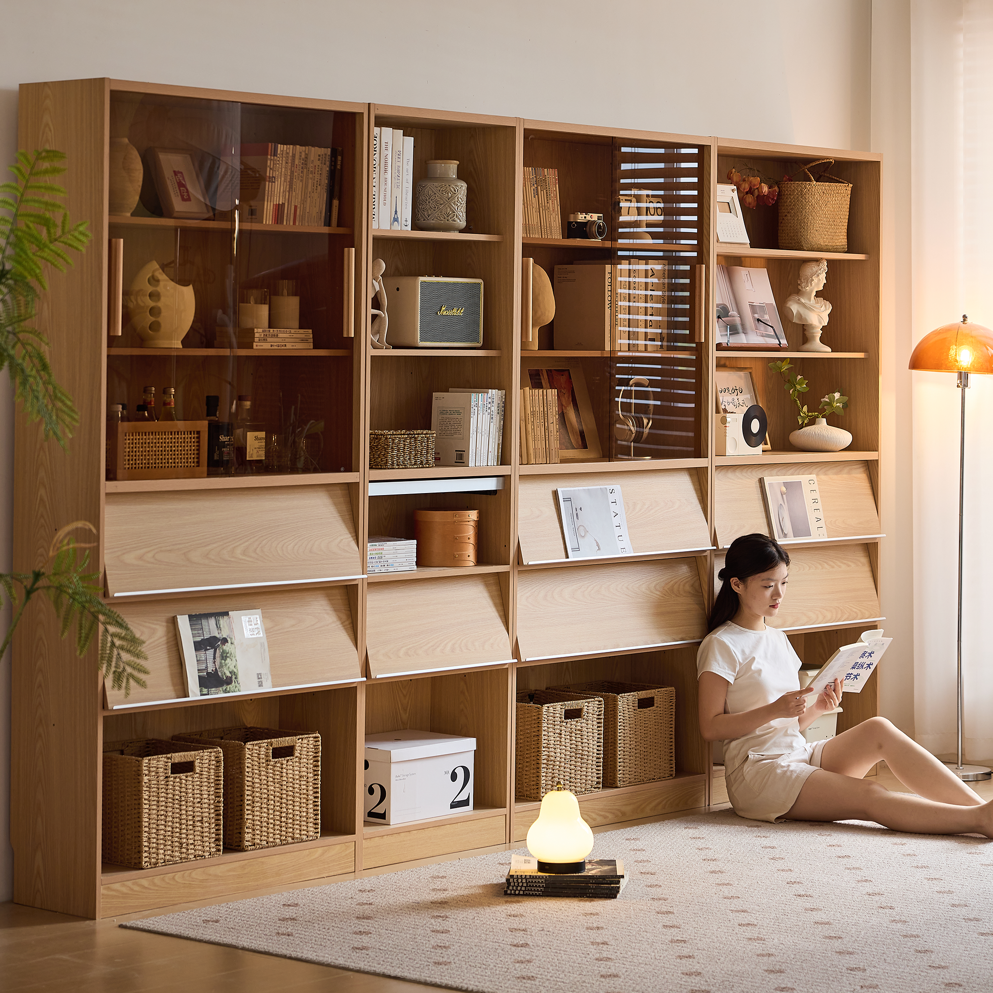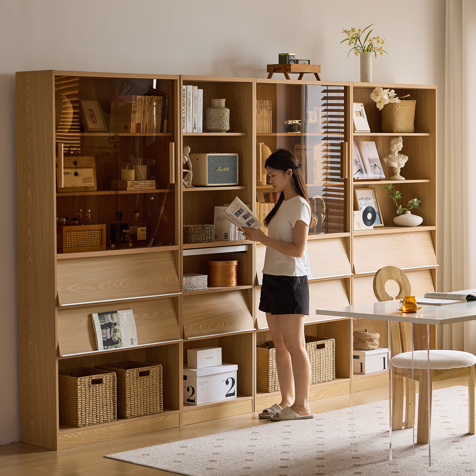 三又木实木单个书柜原木组合柜落地储物柜中古格子柜展示柜手办柜