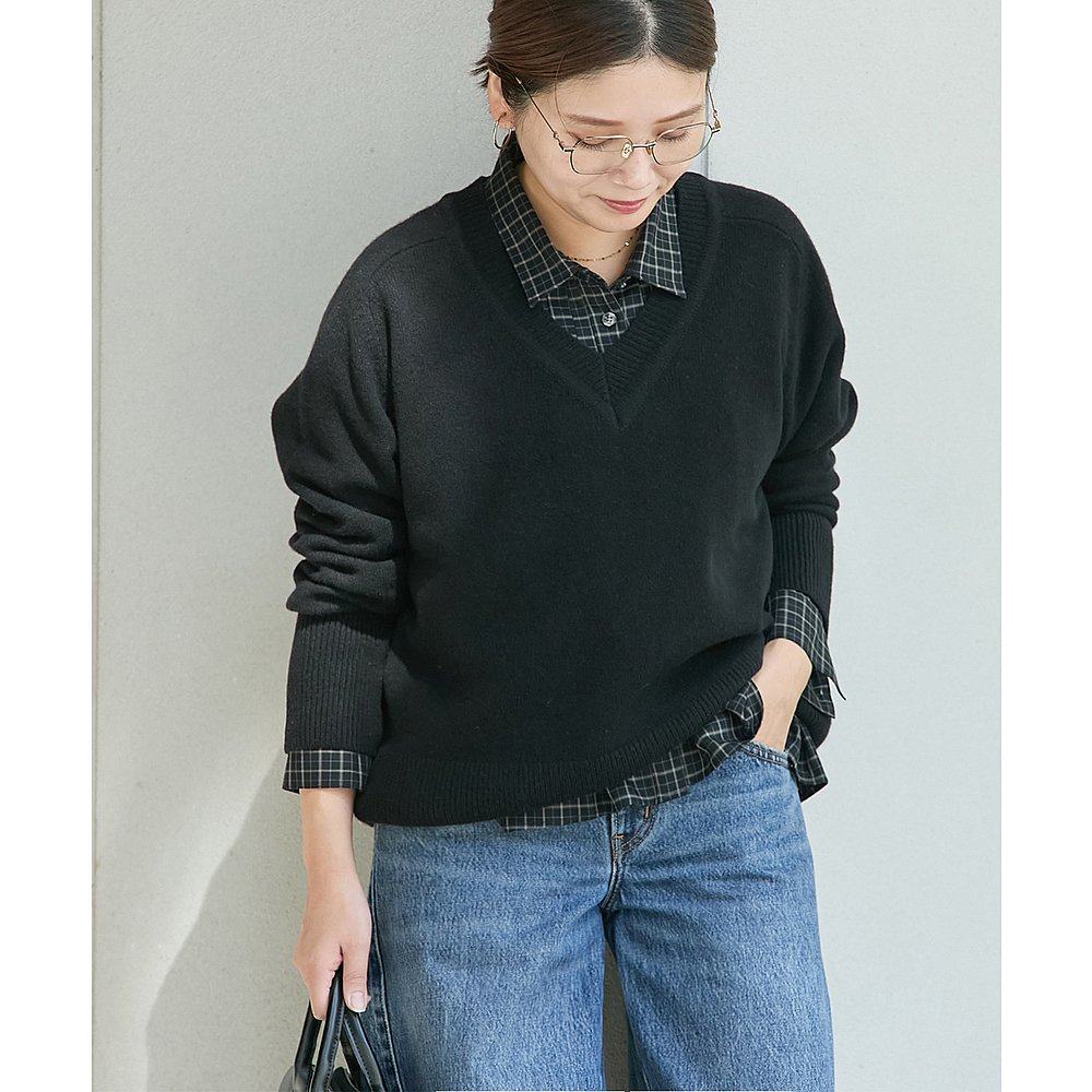 羊毛混纺V领套头衫 1h可退 女装 STANDARD 宽松 日本直邮JOURNAL