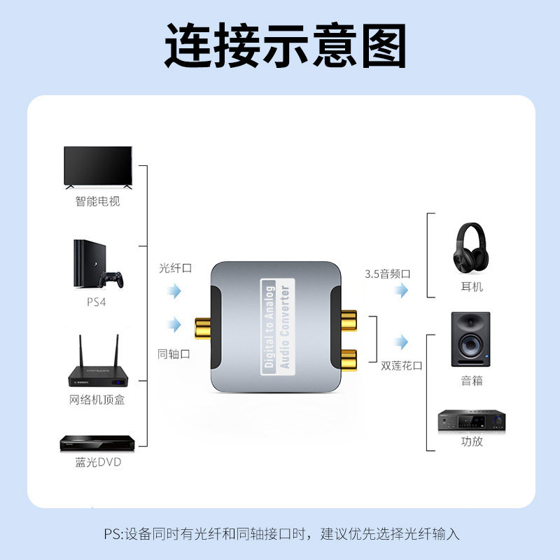 同轴音频转换器电视光纤数字音频输出线转双莲花模拟spdif转3.5莲花电视机输出转音响线PS4转换线功放同轴线