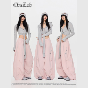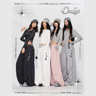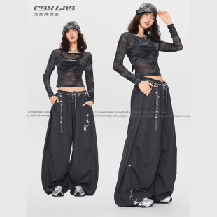 CBXLAB街舞潮牌嘻哈垂坠星星毛边香蕉长裤 爵士简约跳舞显瘦运动裤