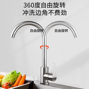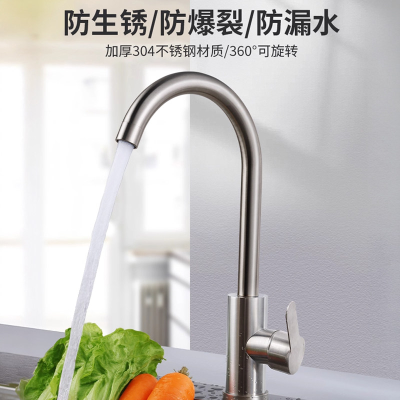 304不锈钢迷你单冷水龙头家用小款 弯 厨房洗手池洗脸盆可旋转立式