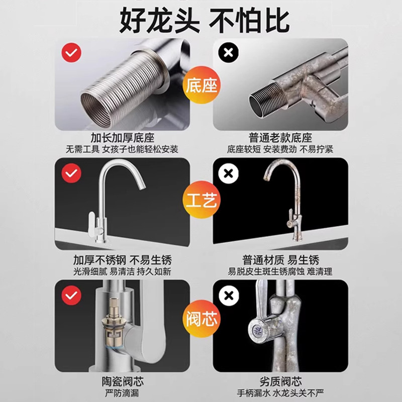 不锈钢厨房水龙头冷热水洗菜盆洗碗池水槽抽拉式 防溅单冷家用全铜