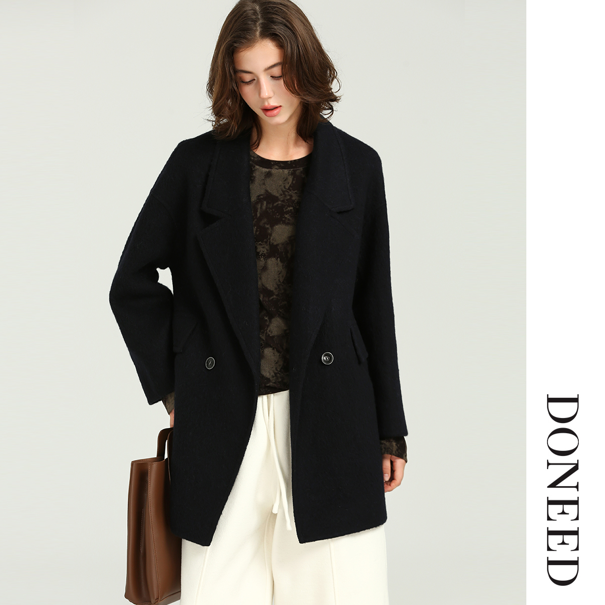 DONEED2025秋冬高级感绵羊毛毛呢大衣新款 复古羊驼毛呢外套 法式