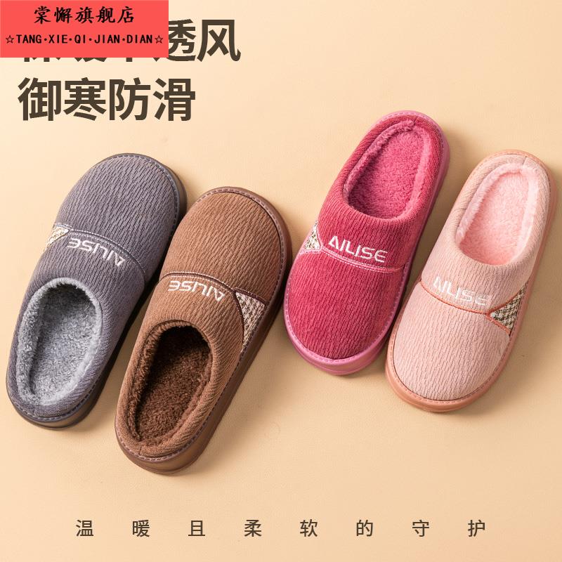 男厚底大码 2025新款 拼色保暖棉鞋 女防滑家居秋冬季 加绒老人棉拖鞋
