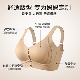 婷美妈妈内衣女聚拢防下垂收副乳无钢圈无痕大码 文胸 前开扣背心式