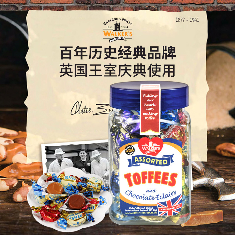 英国原装 喜糖零食什锦糖果海盐软糖 进口Walker沃尔克斯太妃糖罐装