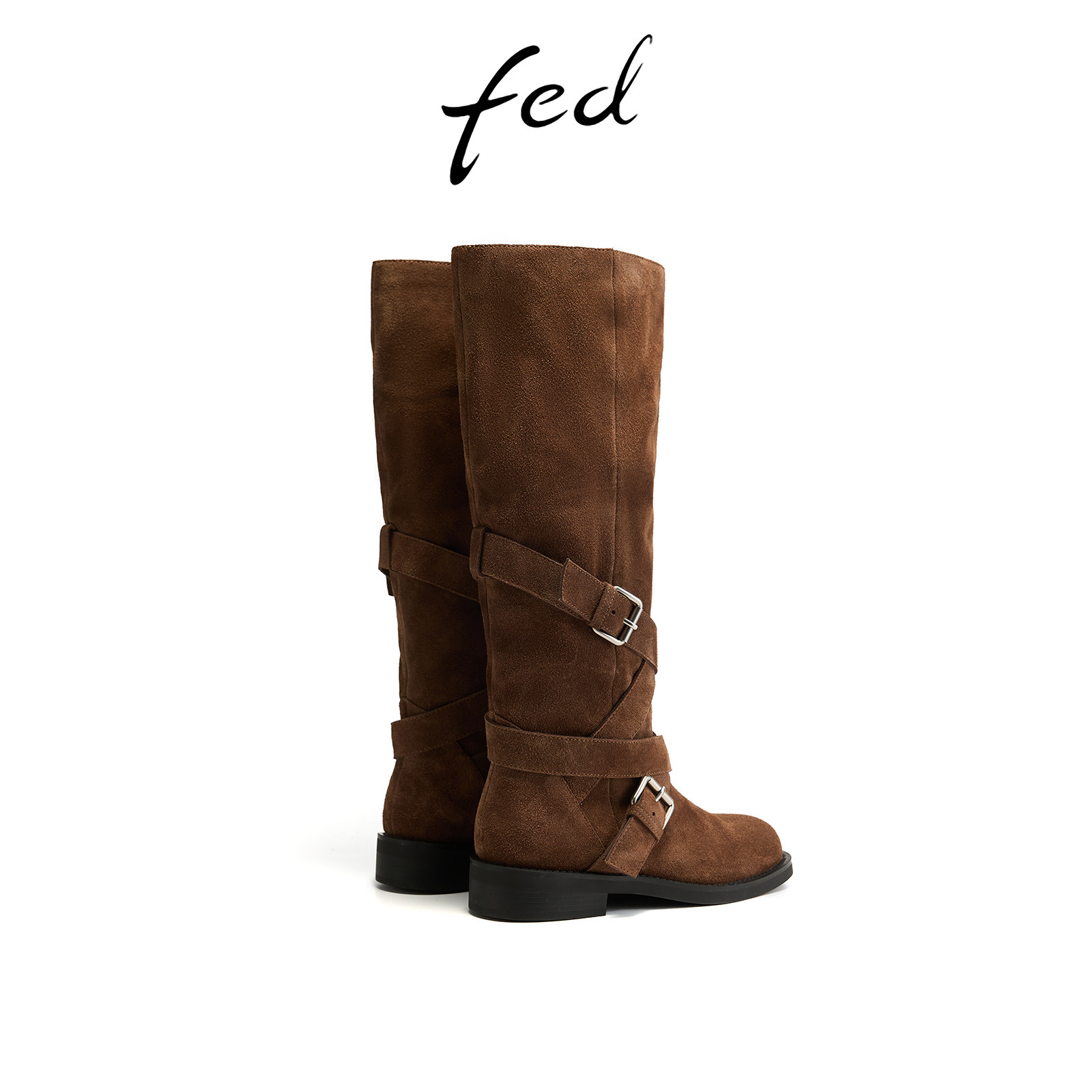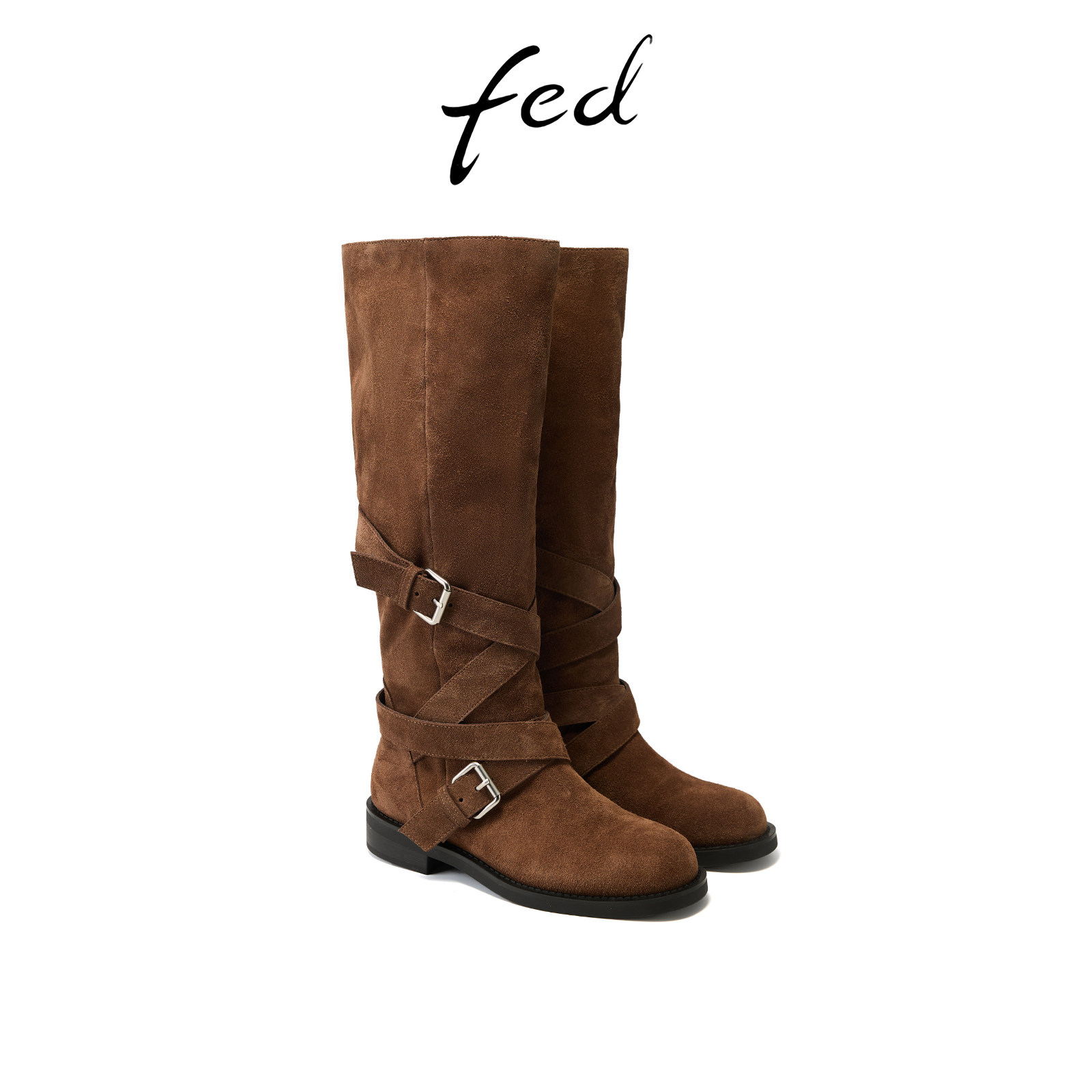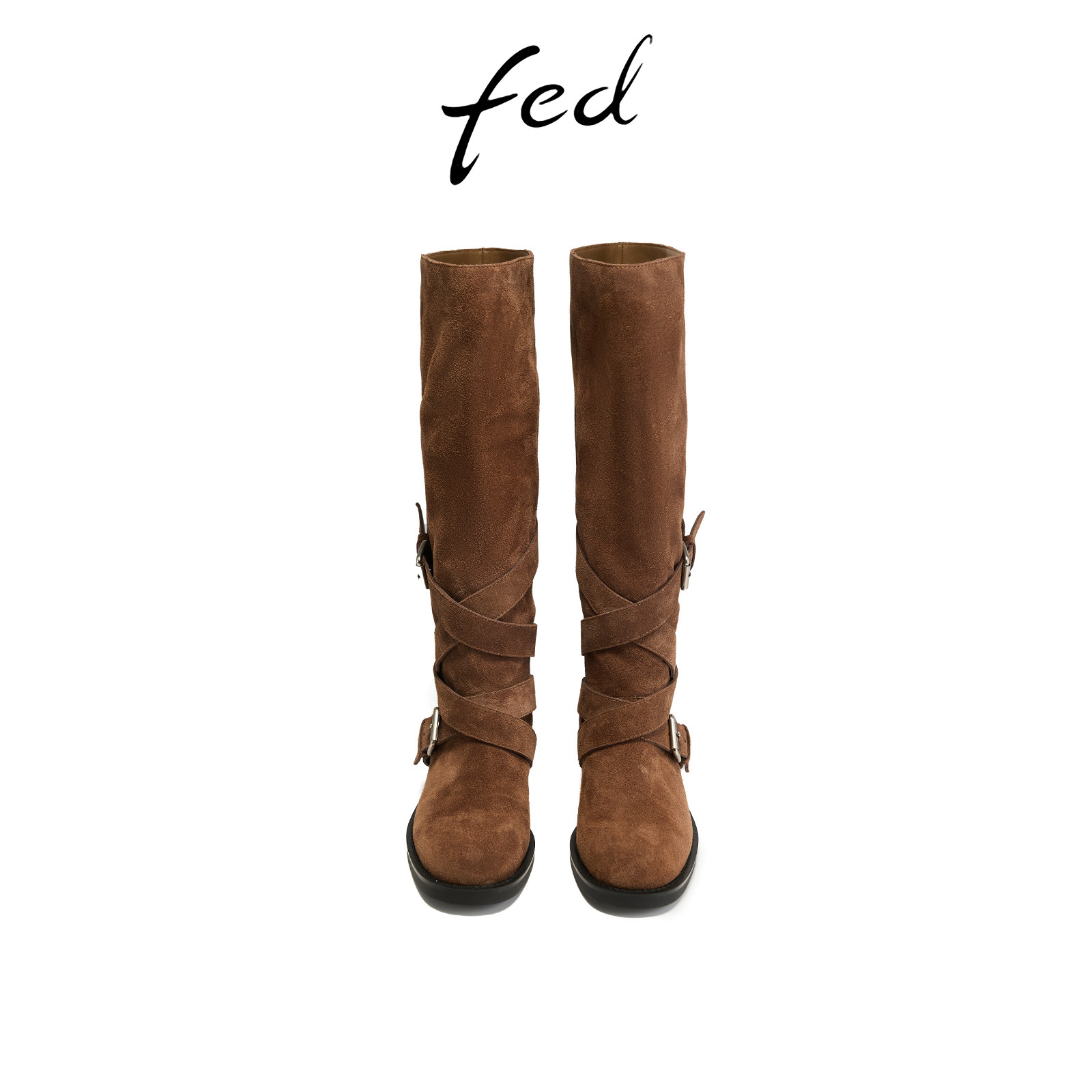 拼接褶皱西部堆堆靴骑士靴 靴子女长筒靴2025新款 真皮 马思纯同款