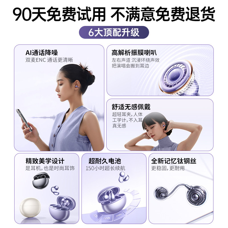 运动跑步 柏林音效无线骨传导不入耳挂式 蓝牙耳机2025新款 耳夹式