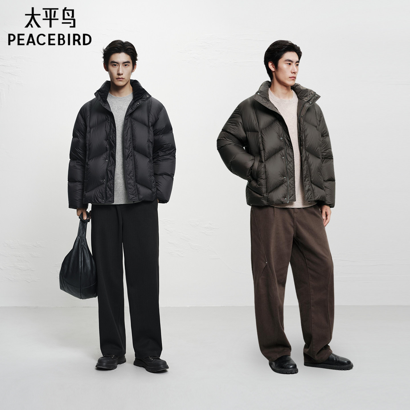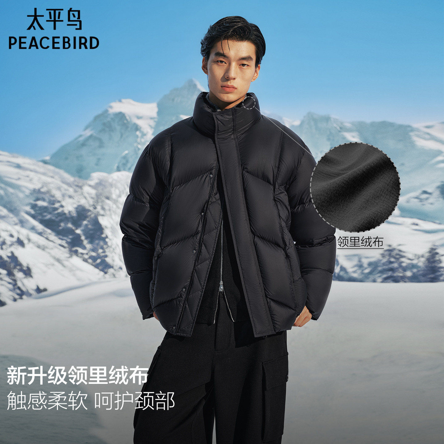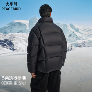 黑色立领面包服防寒外套男 新款 太平鸟男装 轻蓬羽绒服2025年冬季