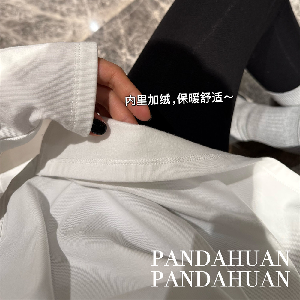 白tee女遮屁股内搭打底衫 薄绒圆领长袖 两侧开叉中长款 叠穿bi入
