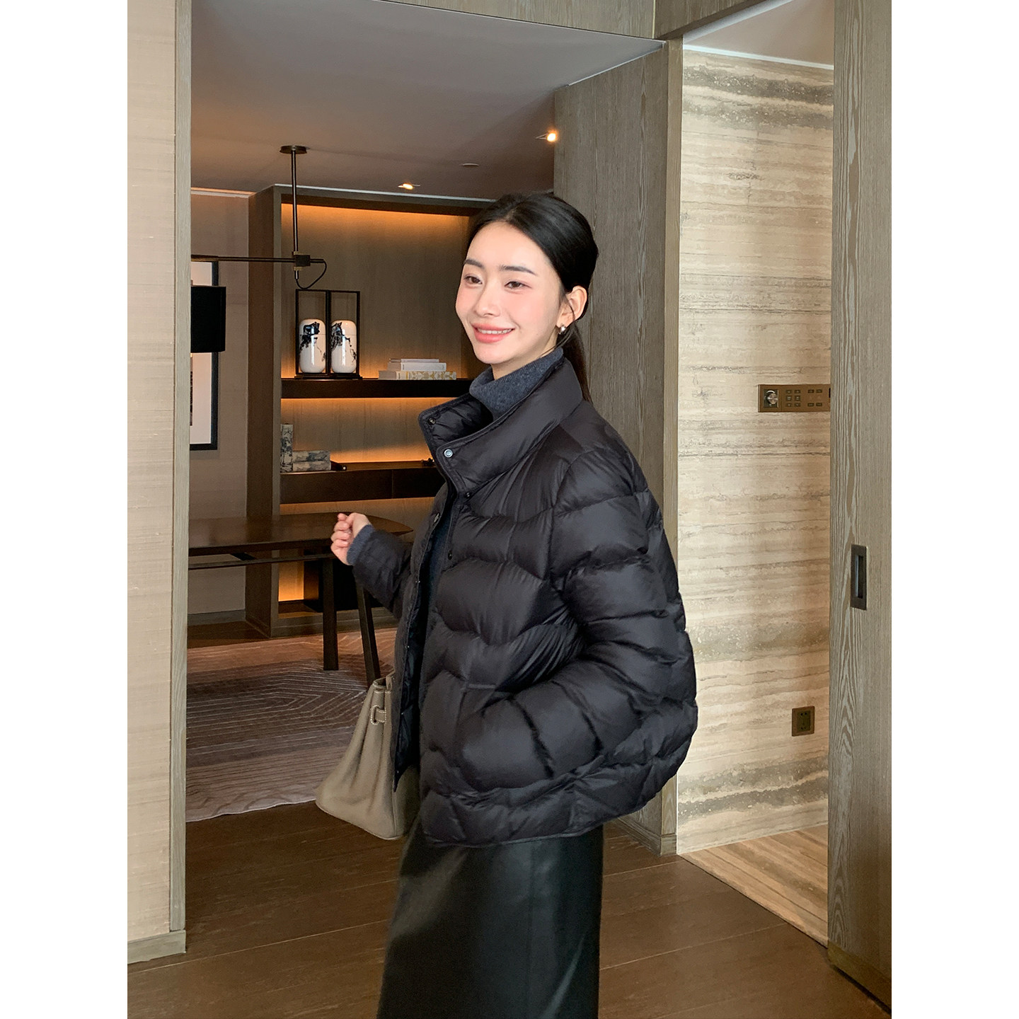 立领波浪羽绒服女通勤保暖短款 轻暖90白鸭绒 羽绒外套 Lin Maven