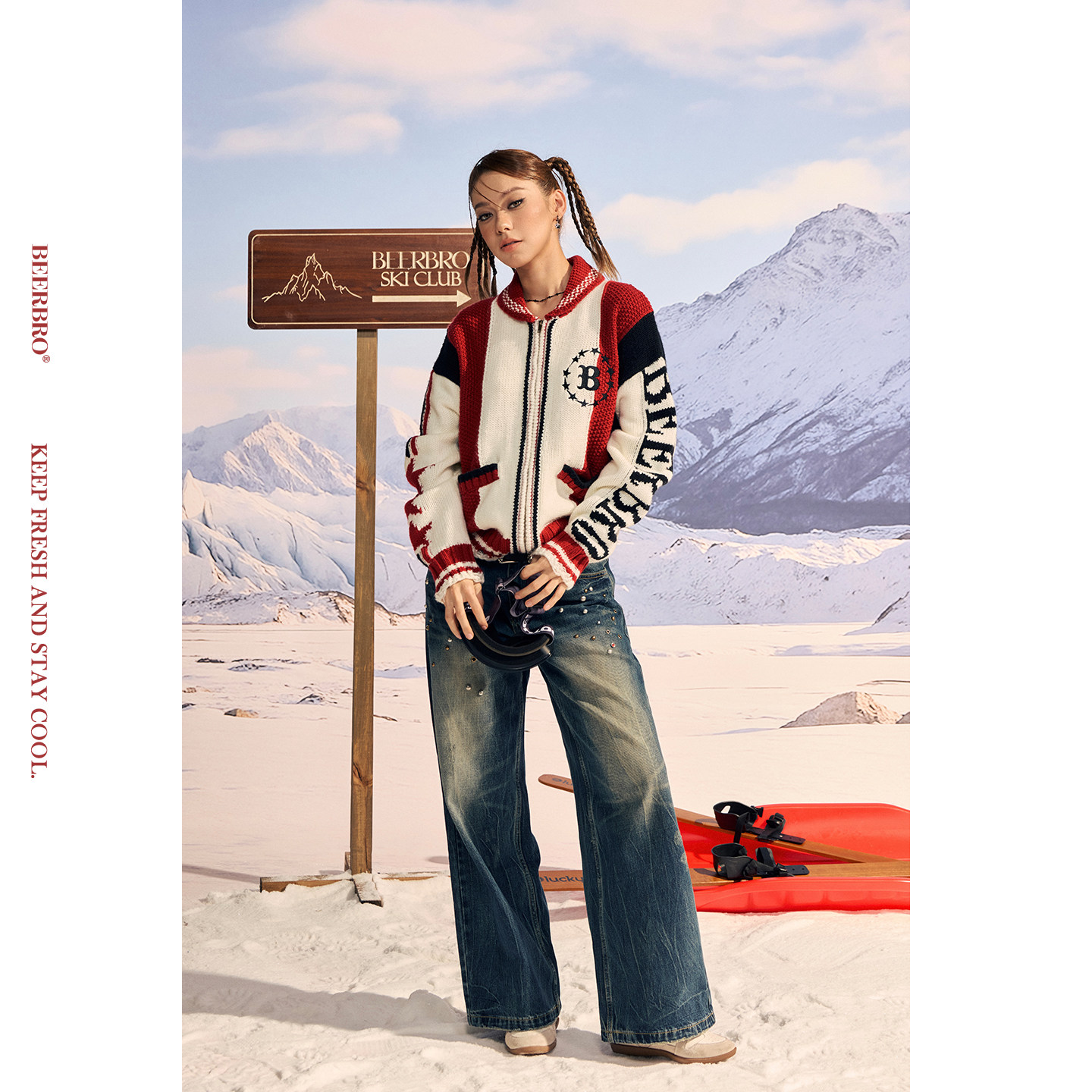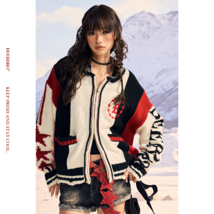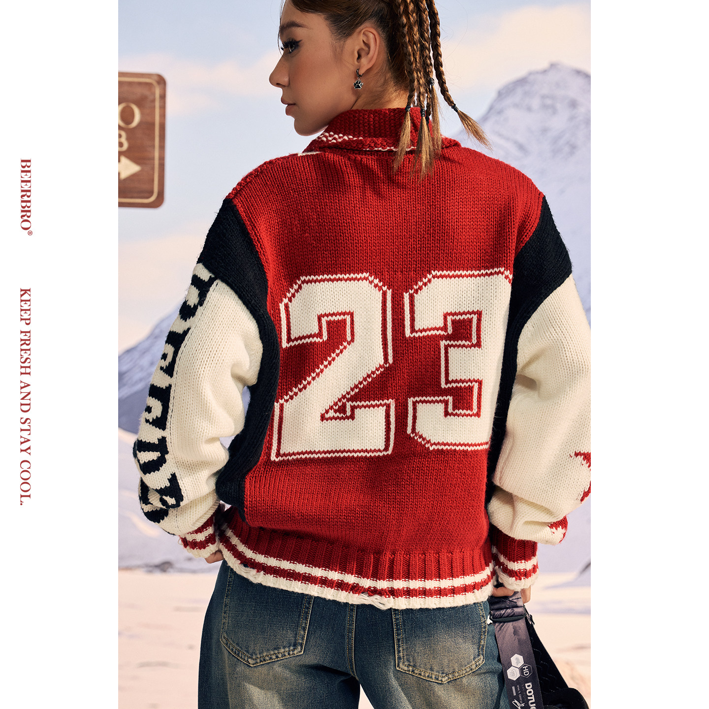 外套 蓬松柔软秋冬撞色数字提花毛衣开衫 BeerBro 反叛竞技社