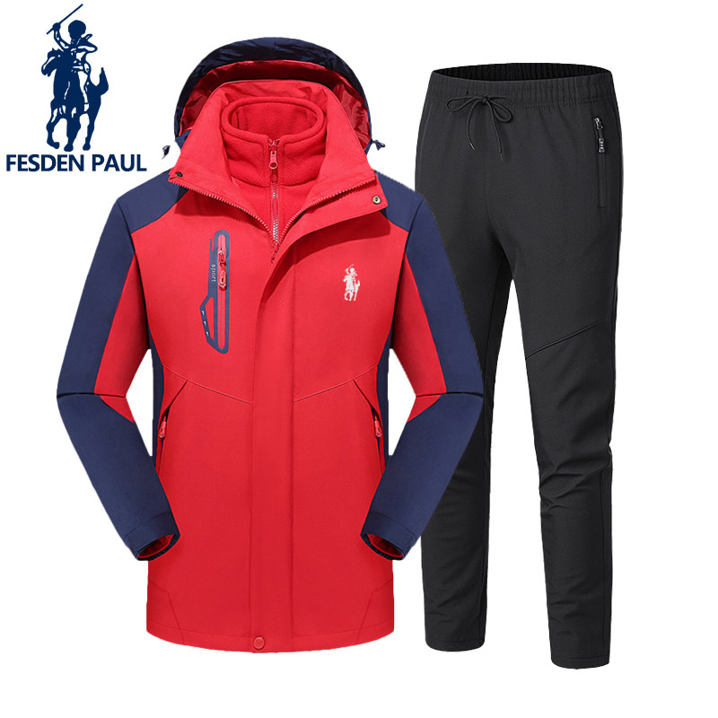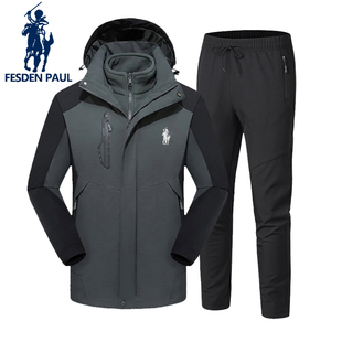 加绒加厚登山服 套装 户外冲锋衣男三合一可拆卸秋冬季 防风防水衣裤