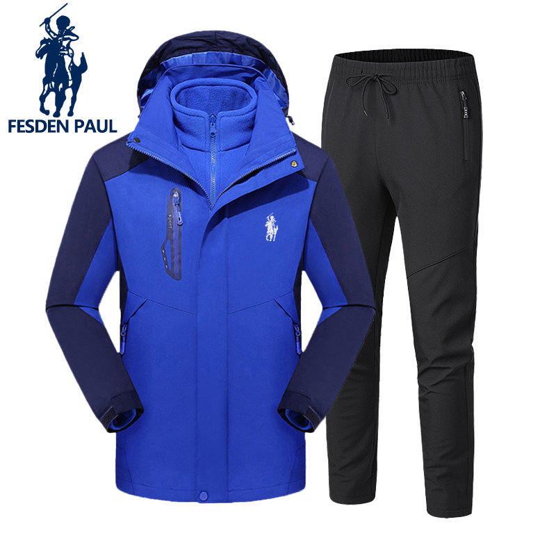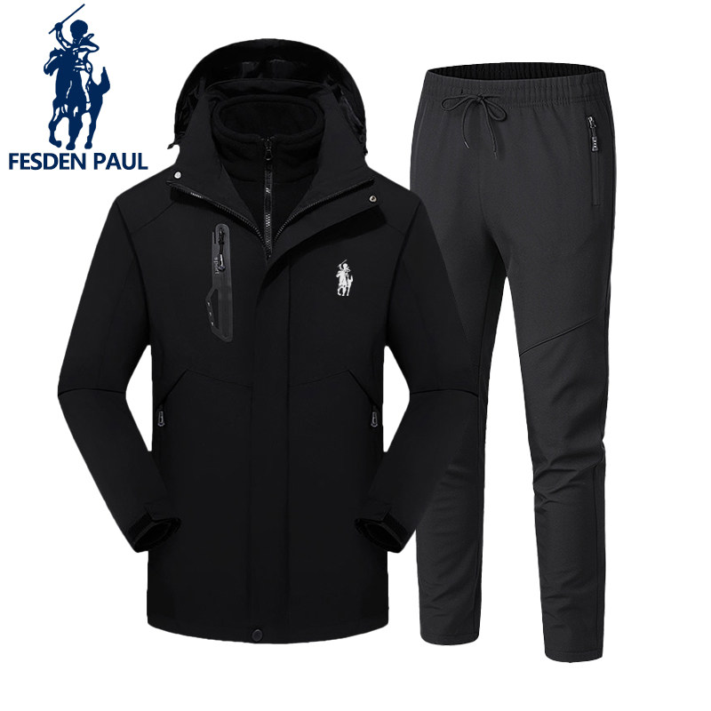 抓绒保暖防风防水登山服 套装 户外冲锋衣男三合一冬季 加绒加厚衣裤