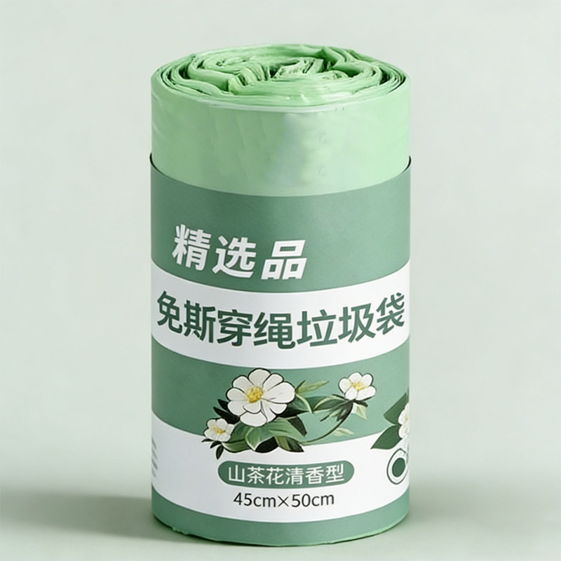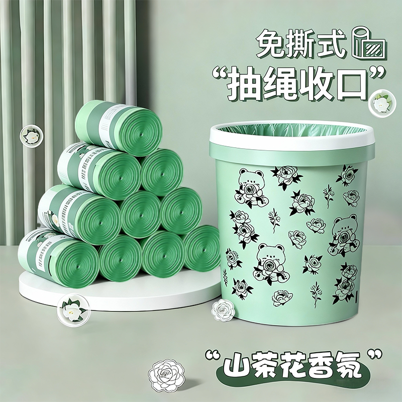 利得免撕印花抽绳垃圾袋加厚厨房家用馥郁花45 100只双面2丝 50cm