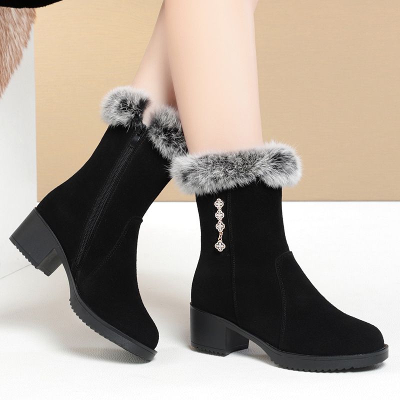 靴皮靴2025冬新款 天美意复古奶皮靴加绒切尔西短靴女鞋 子高跟时装