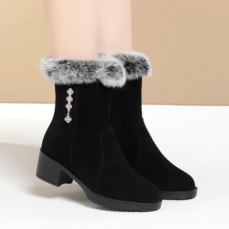 4cm真皮切尔西短靴女粗跟加绒秀气瘦瘦靴 十年·缘分 王小毒