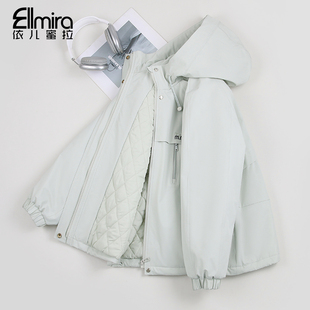 9626短外套冬装 夹棉加厚内里连帽派克服上衣宽松潮流高级感