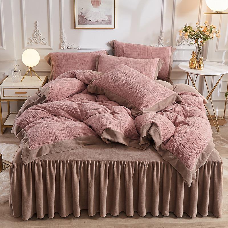 无印良品雕花兔毛绒套件裸睡牛奶绒多件套被套床单床笠床品四件套